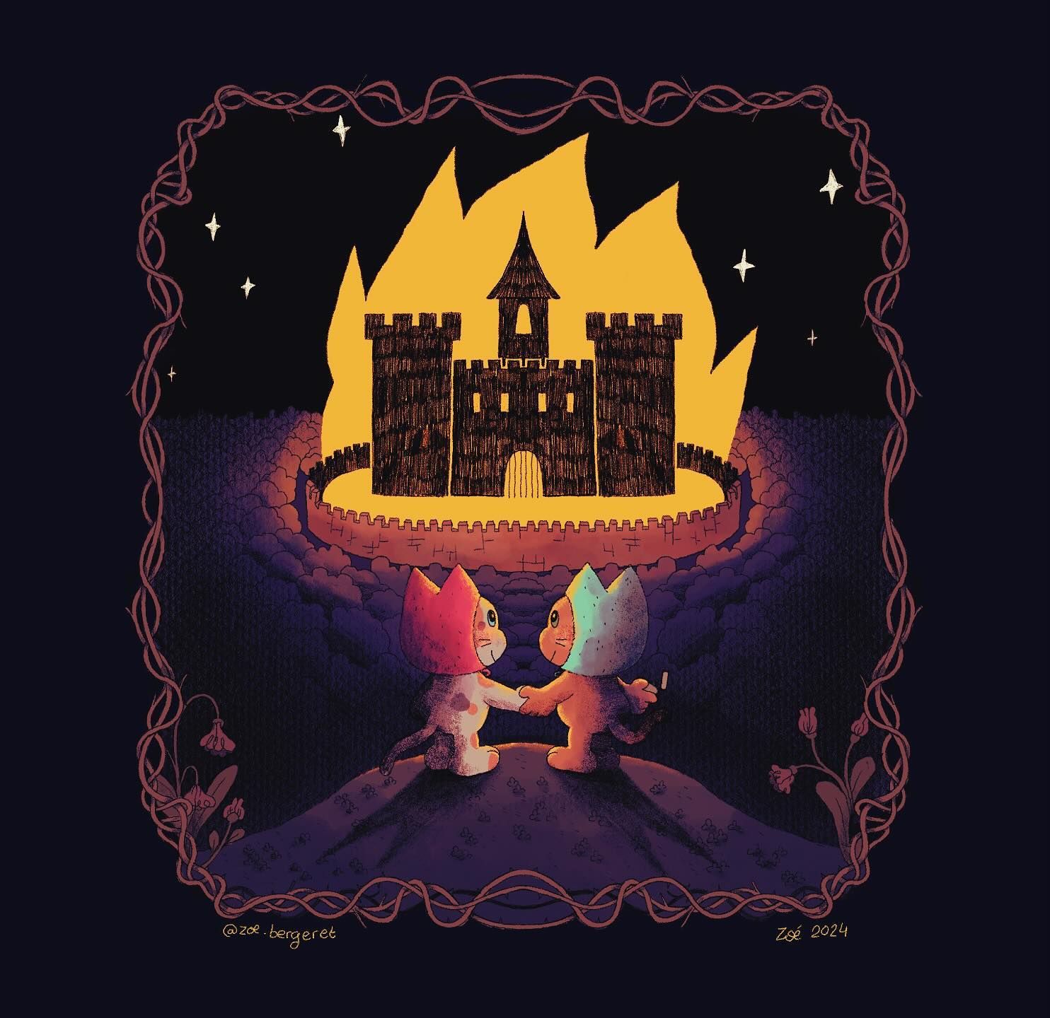 La mort avec toi. Idée de rendez-vous amoureux : on crame des chateaux et on décapite les riches. Procreate 2024.